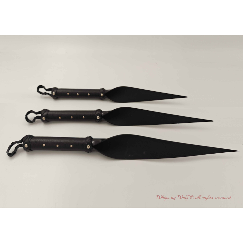 Small: The sharpest of the three. Precise and thin.Size tongue: 30 cm long (11.8 inch) Handle: 15 cm long (5.9 inch) 3 cm in diameter (1.2 inch).