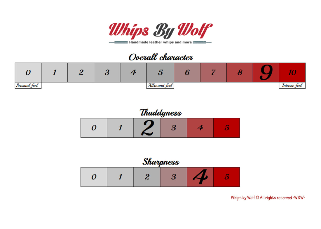 Please find our character card in the gallery for the specific characters of this flogger.Like the style of this flogger but are you looking for another feel? please feel free to contact us!