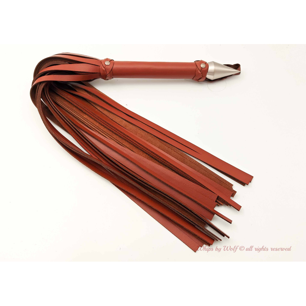 The large leather Flogger is made with 50 centimeters long falls (19.6 inches).