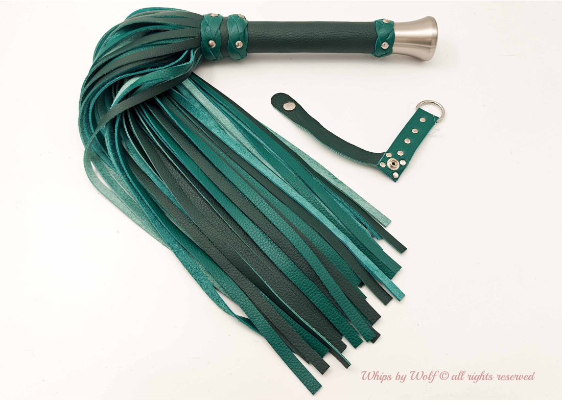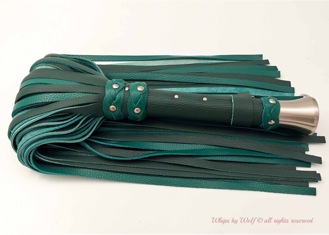 A stunning handmade leather huge flogger made of +100 falls, weighing 1kg+ with a balanced handle to give thuddy and weighted flogging a new dimension.